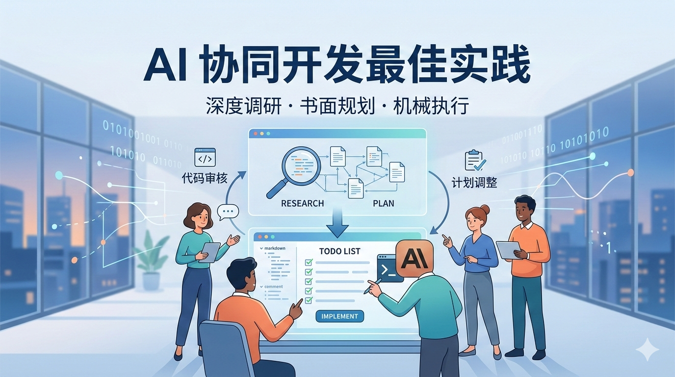 我的最佳实践是将开发流程严格拆分为三个阶段:深度调研 -> 书面规划 -> 机械执行。