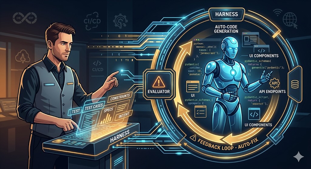 “Harness” 这个词,在电子工程里是“线束”,在软件测试里是“测试床”。但在 2026 年的 AI 语境下,它被赋予了全新的含义:夹在“人类意图”与“模型执行”之间的自动化治理系统。