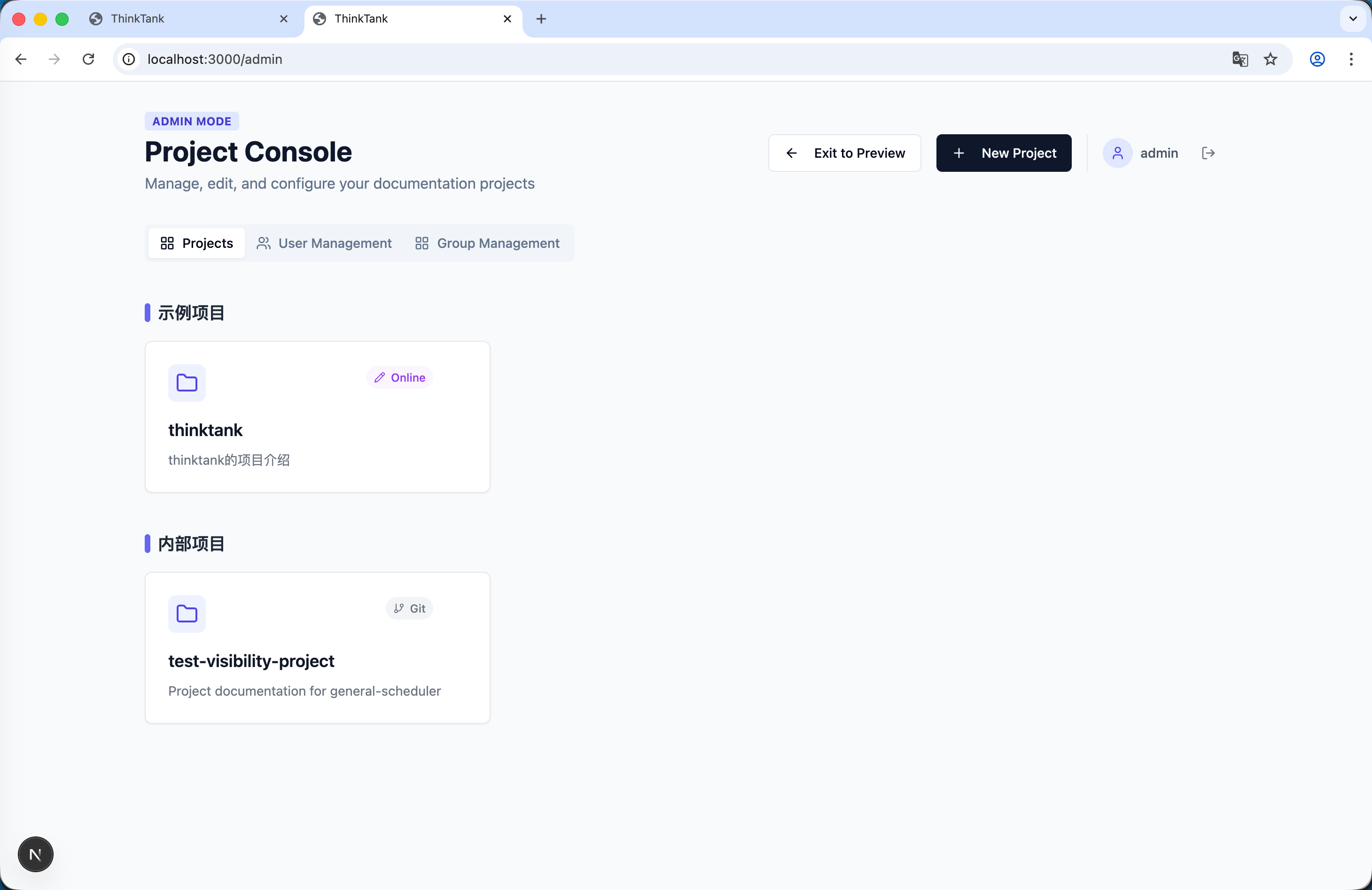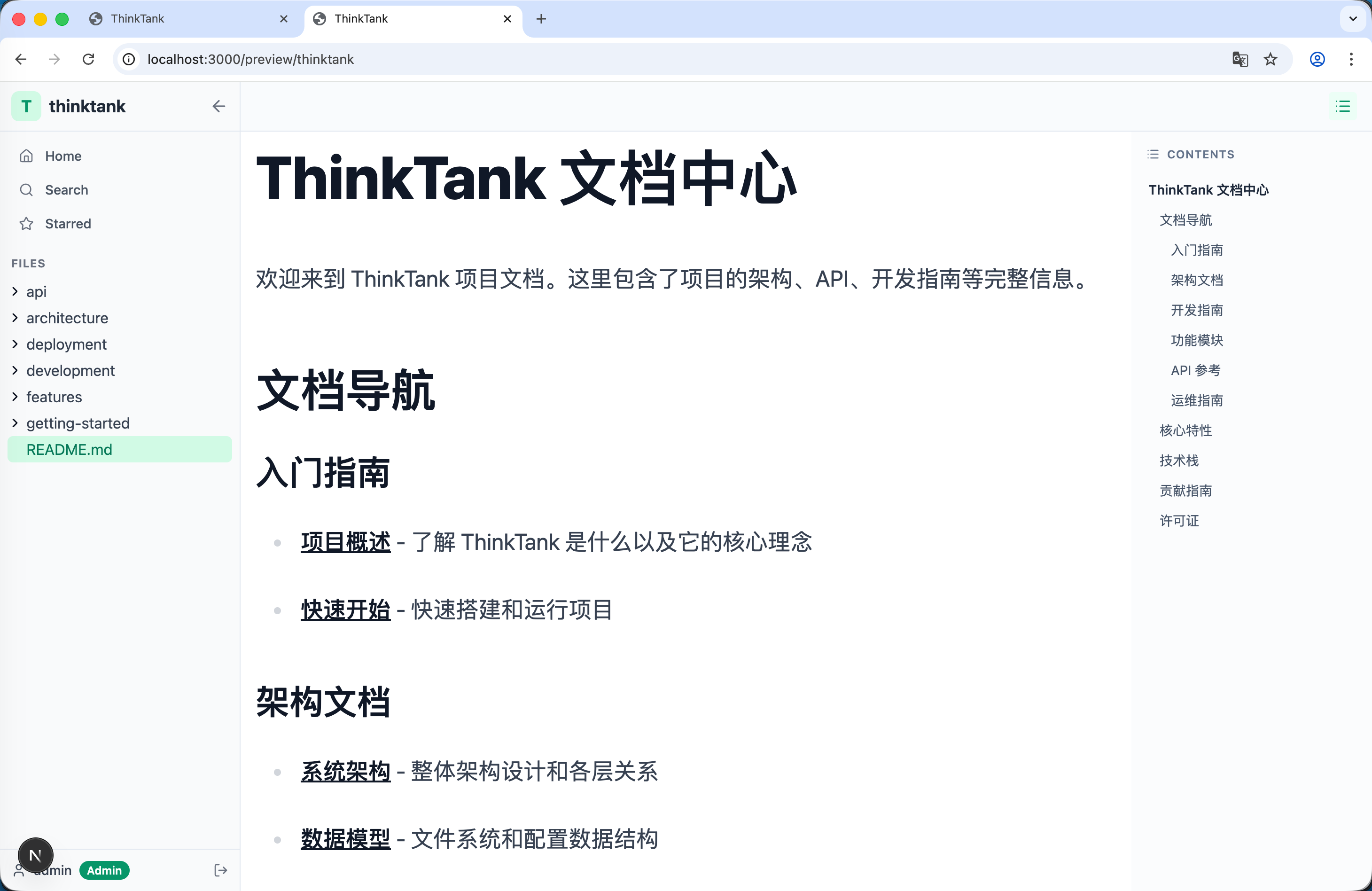 ThinkTank 是一个以“项目”为管理单元的全栈 Markdown 文档系统。它旨在提供纯粹、高效的文档管理和写作体验。
